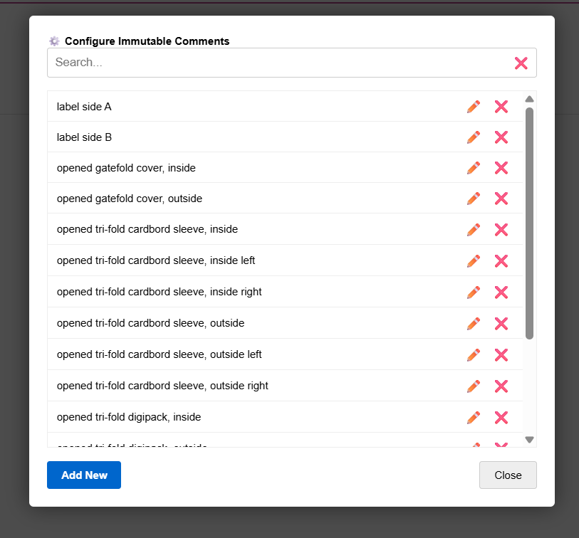Configure immutable comments” in the container where comments can be specified which should always be offered for auto-completion. With another button “