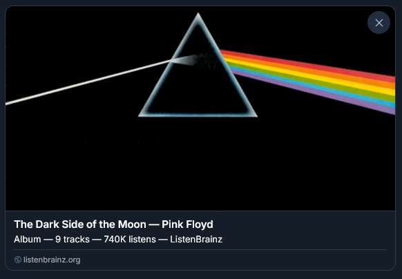 sidenote, the embed for CritiqueBrainz probably needs some work, as it looks very basic. maybe a custom image with the CritiqueBrainz logo and the album artwork or something? aerozol, you got any input? it should probably be wide, I think that’s a pretty standard aspect ratio for social media post embeds. looking at the ListenBrainz embed, that seems to be the case: