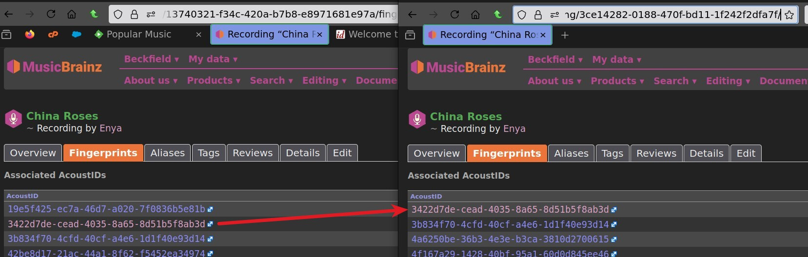 Also remember if someone incorrectly links a track, submits an AcoustID, and then later moves that to a different release then they can’t move the AcoustID.