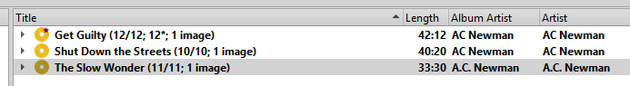 - Although they are correctly displayed in 2 albums as AC Newman, they do all correctly use the same underlying Artist record for A.C. Newman.
