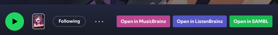 Notably it adds buttons for ISRC Hunt, ListenBrainz and SAMBL. a-tisket was removed.