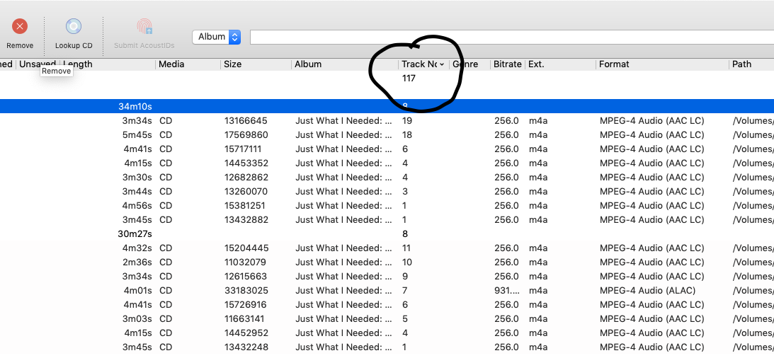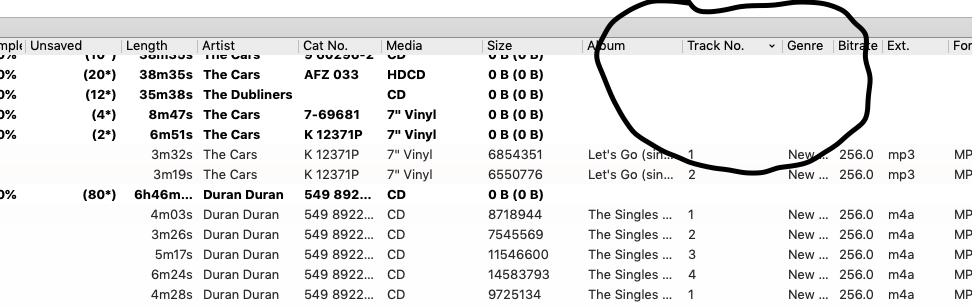 Since things like artwork quantity, unsaved/changed tracks, etc. are derived from within, are dynamic, and that data is specifically shaped/formatted for display, that is done in the code segment for the level of detail that is being made visible. If at the track level, an elif column in track, otherwise elif column in album or cluster.