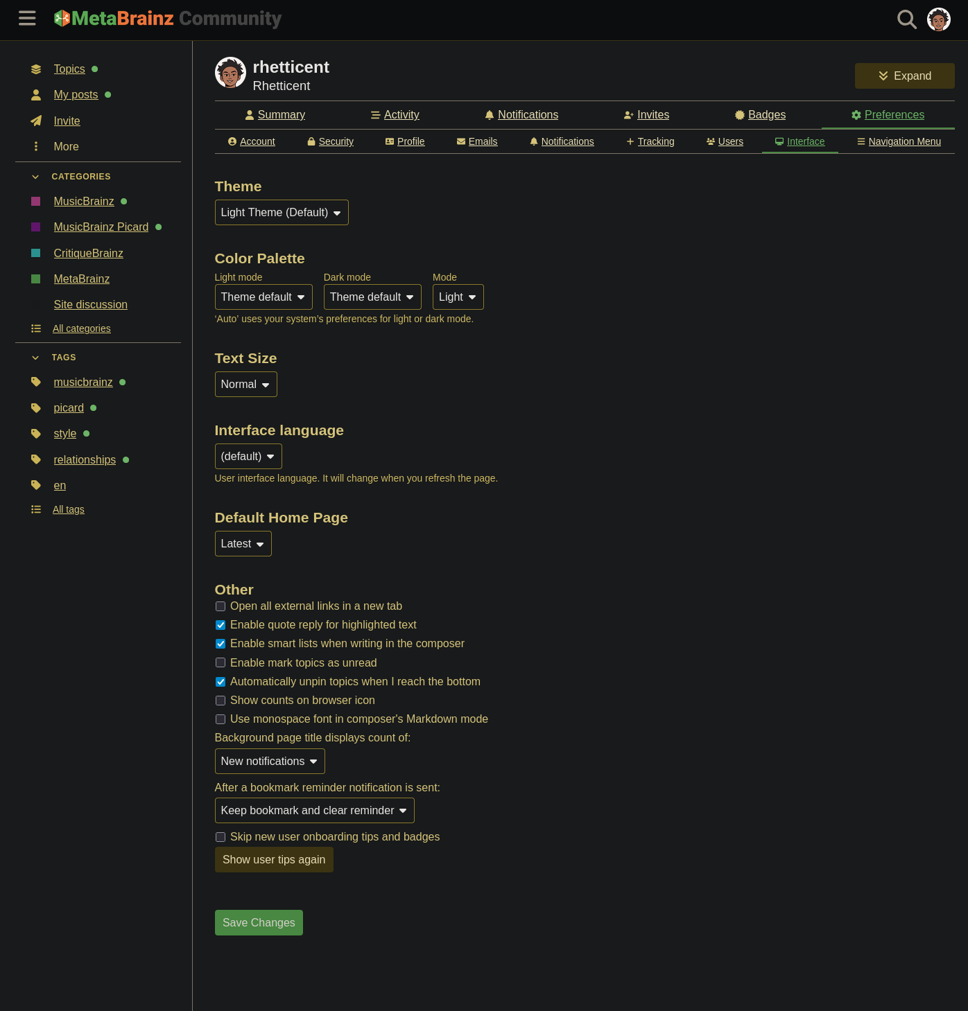 looks like the update has added theme selection for both light and dark mode. the screenshot above is the MetaBrainz dark mode (I’ve been using it for quite some time)