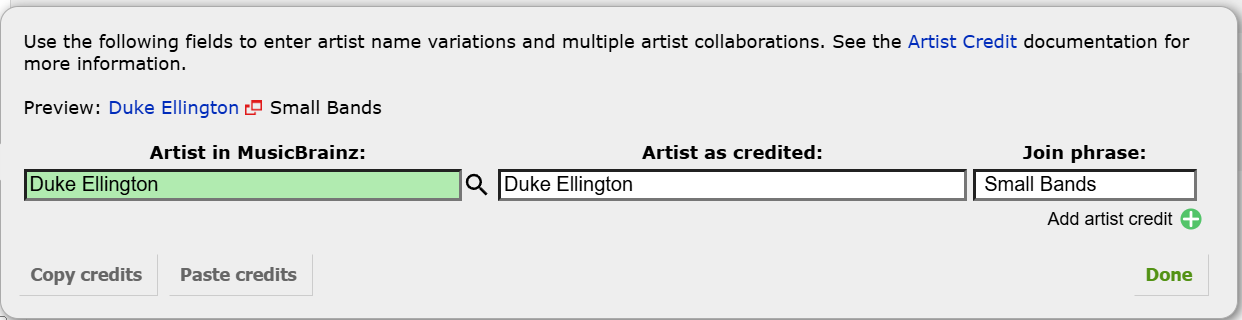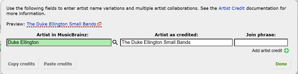 Renaming? I didn’t think I could do that, since the point is that the artists changed; the tracks had been credited to Duke Ellington with recordings under his artist. For the most part, the track names were the same, it’s the artists that changed, and per the research that @riwood had graciously done, I knew what recordings these actually were.