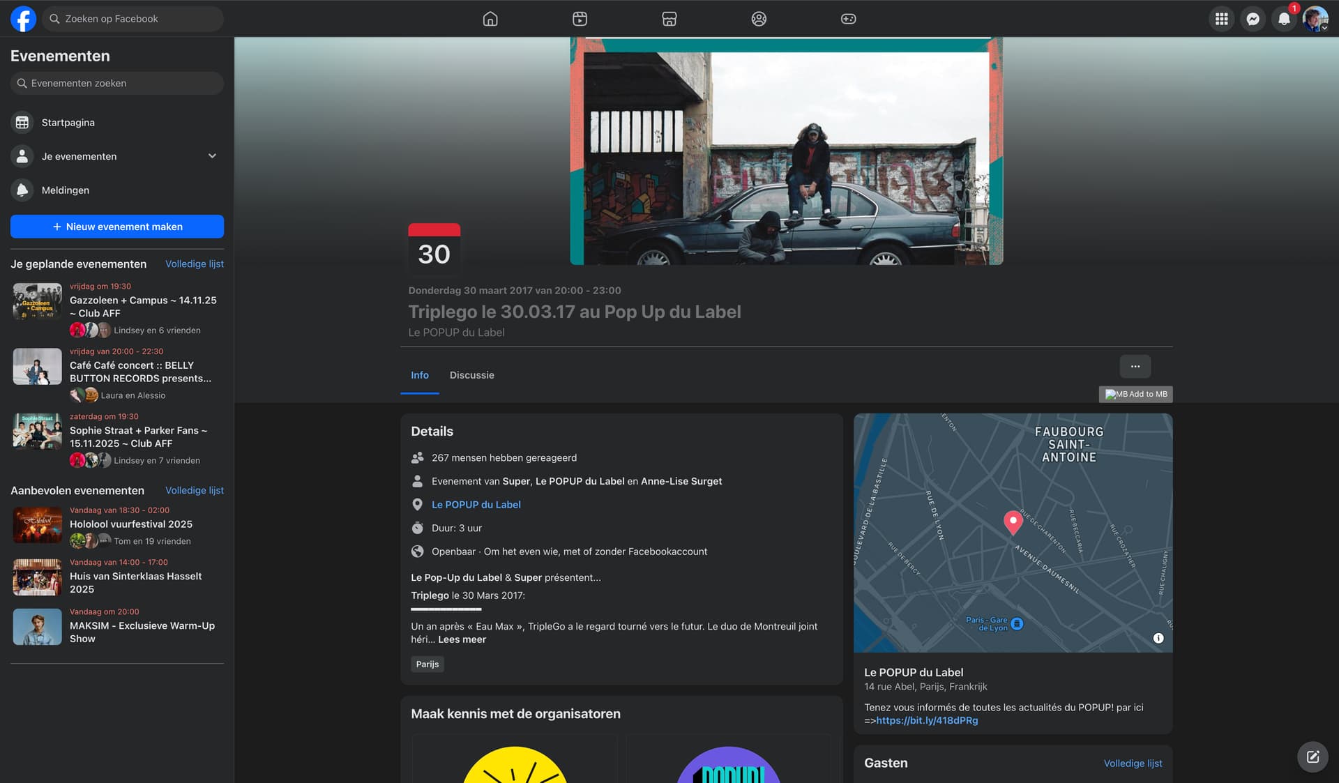 for instance trix bar/ trix zaal/… on facebook it just says trix.