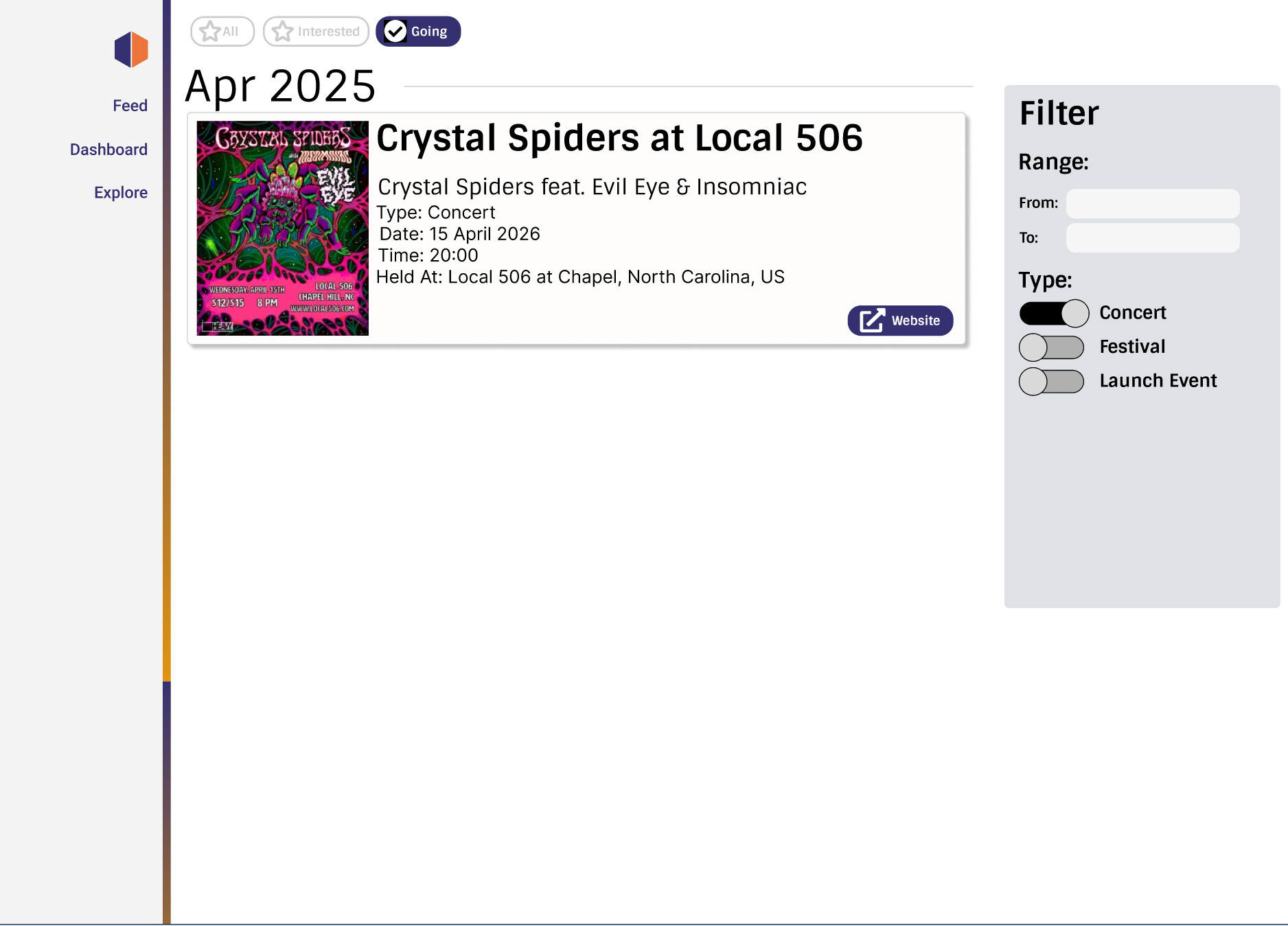 - Create a New Events page that is both global and tailored to the user, such that the user can find new events that are relevant to their music tastes