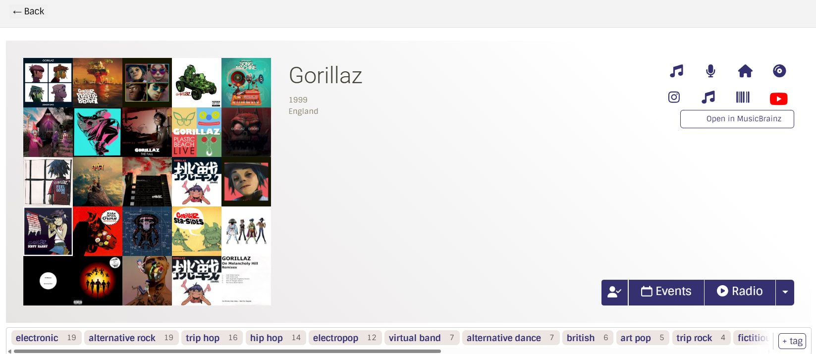- Artist page ‘Events’ button