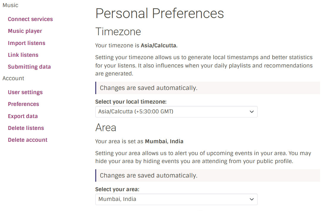 The area feature would be implemented once MusicBrainz area data is in MetaBrainz OAuth.