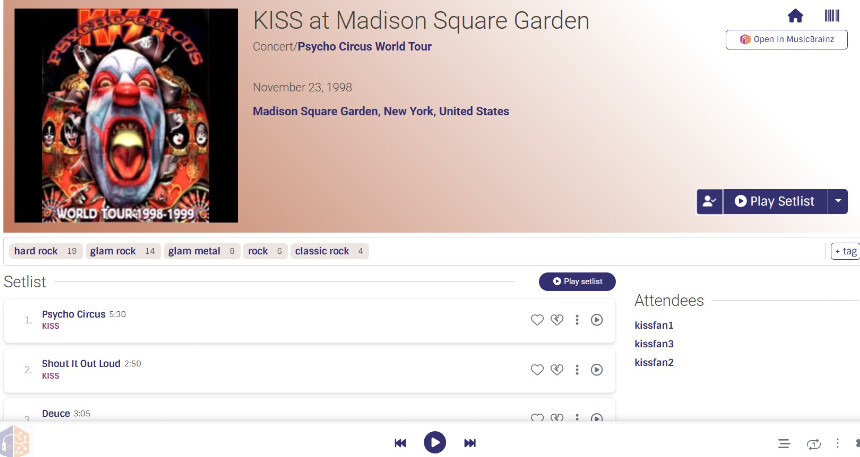 - Setlist can be played in BrainzPlayer similar to playing albums from album page