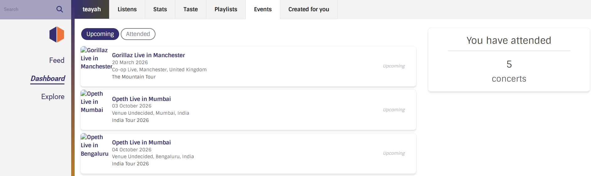 - Upcoming events (attending)