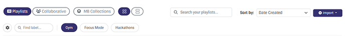 Interactive Tag Pills: Displayed at the bottom of playlist cards, alongside a fast-action “+” icon to instantly assign new tags without digging into dropdown menus.