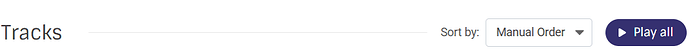 Sort Dropdown: Positioned ]next to the “Play all” button, providing clear dynamic sort options (Date Added, Track Title, Artist Name, Release Date, Randomize).