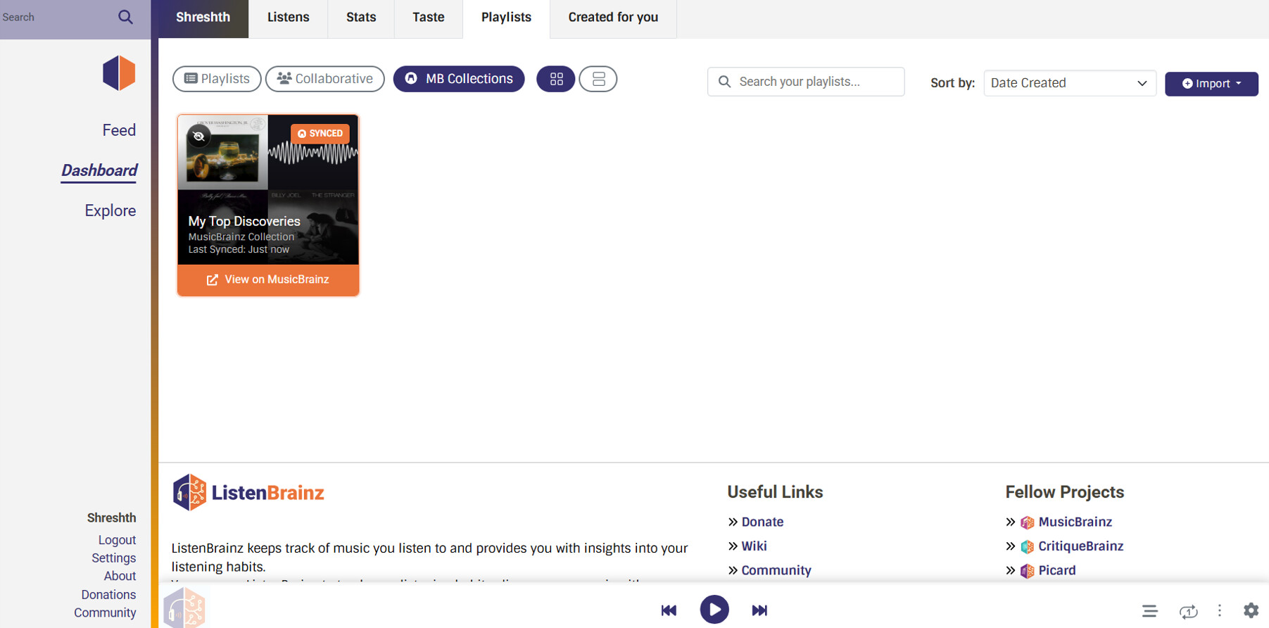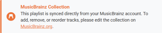 UI Isolation: A dedicated “MusicBrainz Collections” tab keeps live, read-only external collections conceptually separated from standard, editable ListenBrainz playlists.