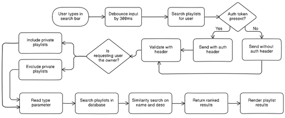 | 2 | Add search bar in Playlists.tsx and searchPlaylistsForUser() in APIService, Render scoped results |