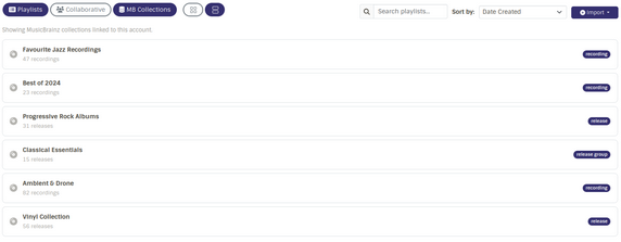 recording, release or release group) will open a dedicated detail view which will reuse existing playlist componentsPlaylistItemCardinPlaylist.tsxfor track display. - Clicking a collection with other entity_type (