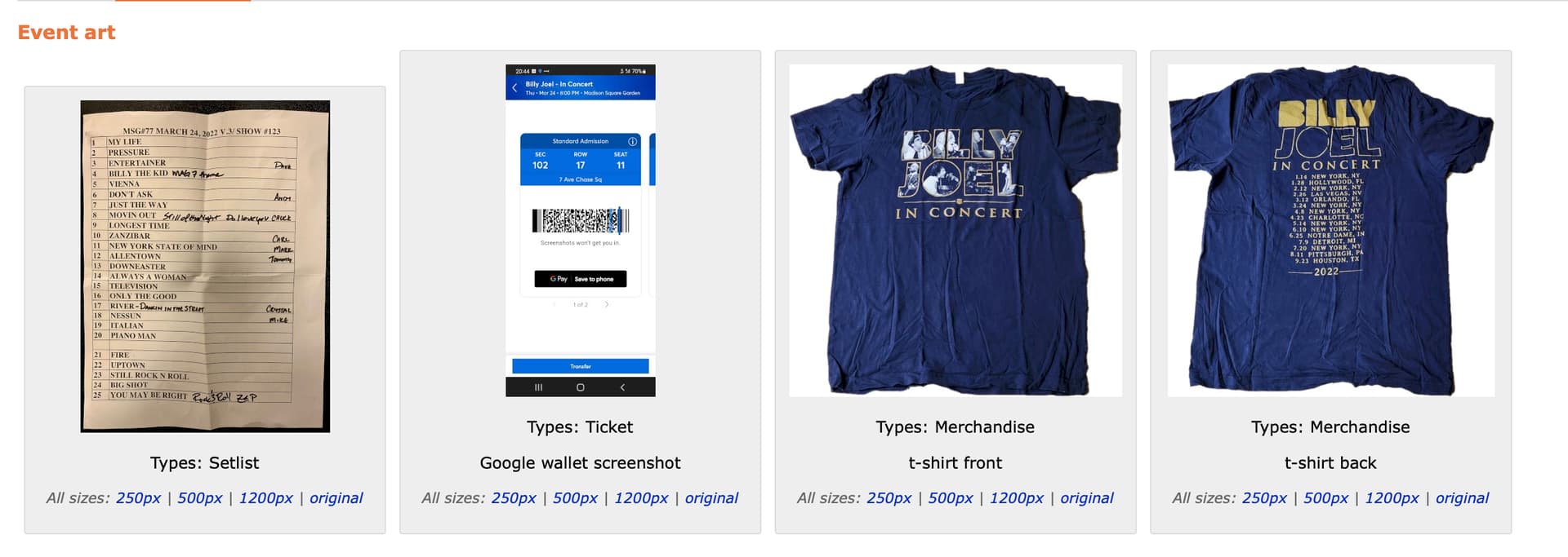 Hi! I’m working on this ticket about the event arts and the art that should appear on the event details. I’m new in the community so I’m still figuring it out. Wanted to ask about How the art_types are structured, is there like id’s for them like Poster 1, Flyer 2, etc? Or is it just the name on them? Also to be aligned about the hierarchy of the art_types and the order they should appear. Thanks in advance!