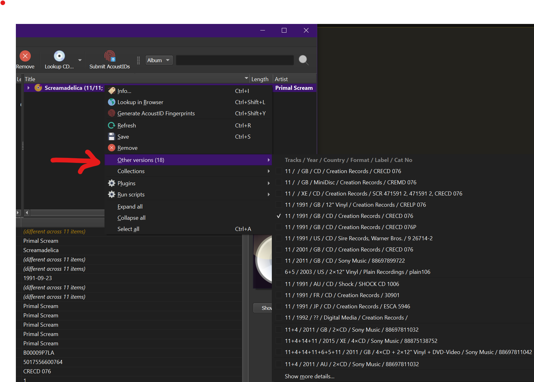 If I run my script, how can I then pull the correct release version (i.e., “20th anniversary edition”) to format my album correctly like so:
