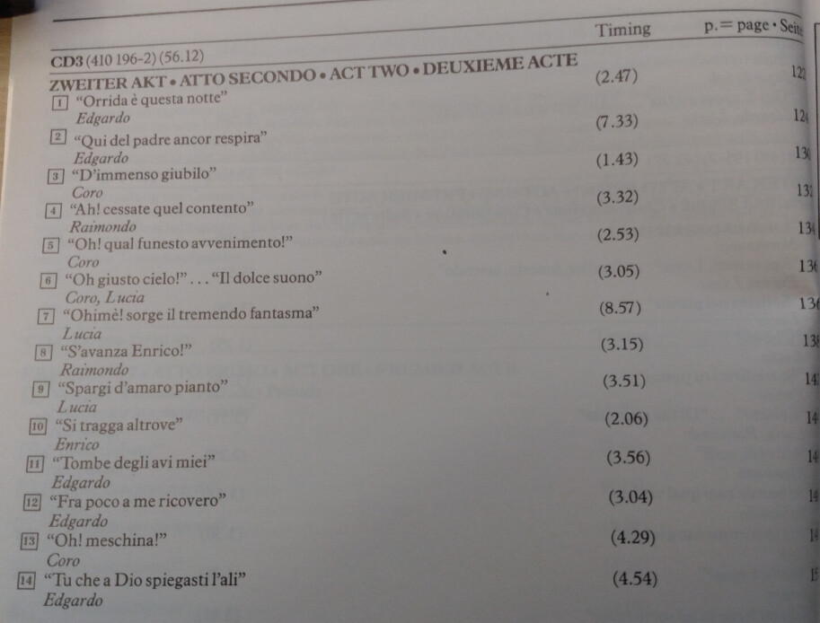 That’s act 1 on CDs 1 and 2 and act 2 on CD 3, and the libretto in the booklet splits it into acts the same way. The current tracklist on MBz has act numbers that match the CD numbers, and Lucia di Lammermoor - Wikipedia seems to agree. I don’t see anywhere else online that agrees with this booklet.