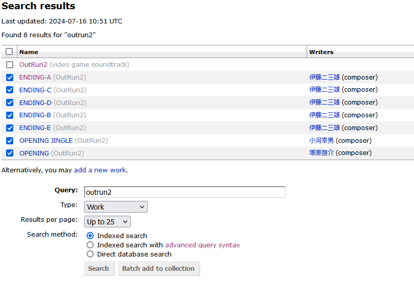 I believe I used to use this script to relate stray work MBIDs from the search to the corresponding soundtrack page, but when I tried the bookmarklet on the soundtrack page, it didn’t seem to work.