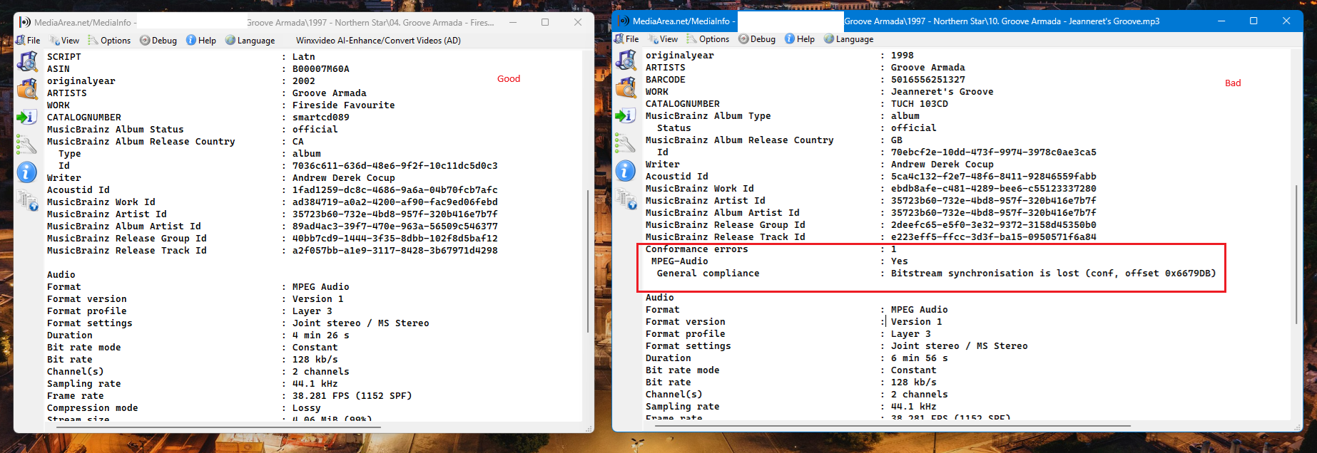 These warning files are slightly corrupted. The program wxMP3val shows this.