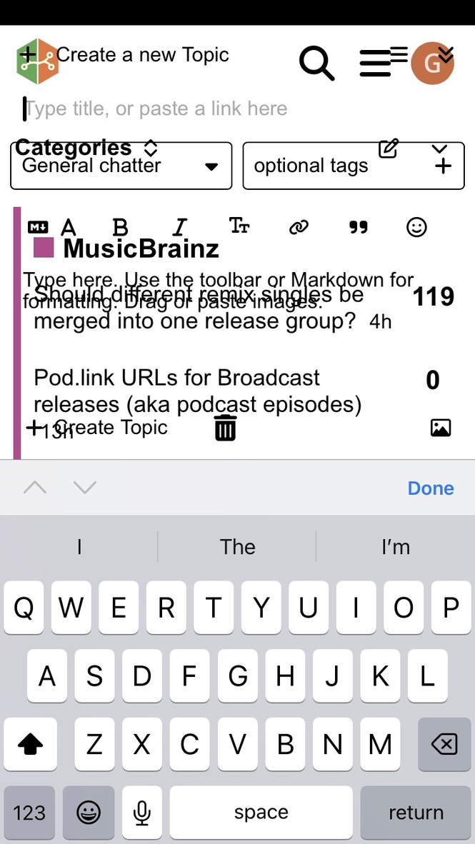 I’m using the Discourse (Hub) iOS app (v. 2.0.12) on an iPhone 8. I have a couple of problems with using the MetaBrainz community within the app.