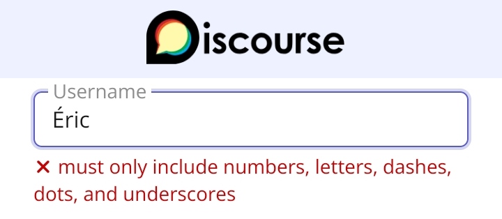 We should change Discourse settings to allow at least all characters that are accepted for MusicBrainz usernames.