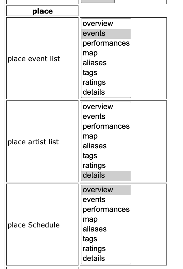 if you want the place event list on the overview pqge you just select overview.