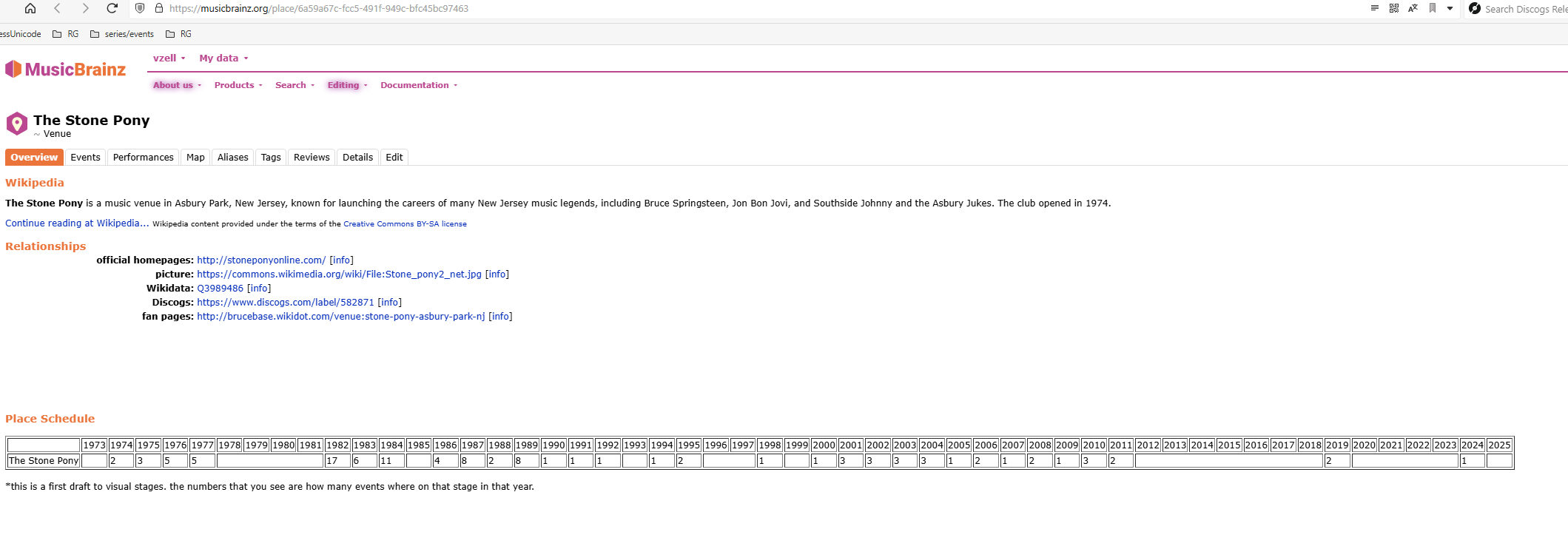 oke, so i made some change, i know use browsing where possible to get more stuff at a faster rate (when viewing events for an artist or venue this will reduce the amount of request by a factor of 100; i tested on the boss since that is one of the artists with the most added events and now it only takes 42 requests)