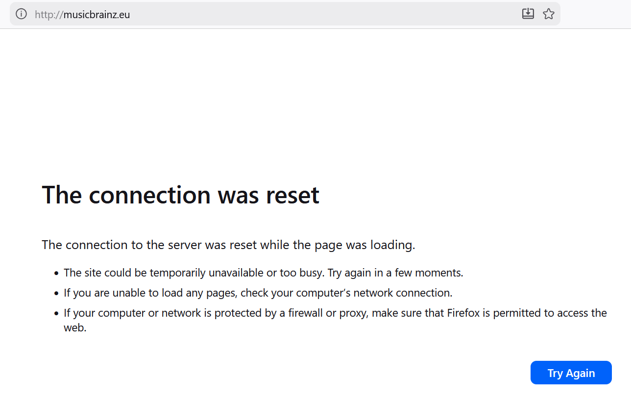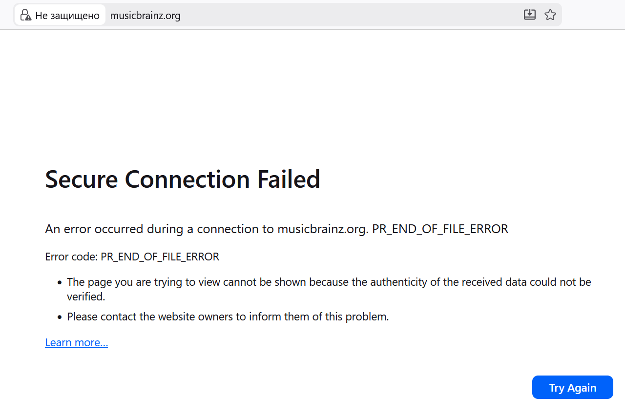 I can’t open MusicBrainz and ListenBrainz on my PC. All other websites work as usual and this problem doesn’t depend on browser I use. What can be a reason for that?