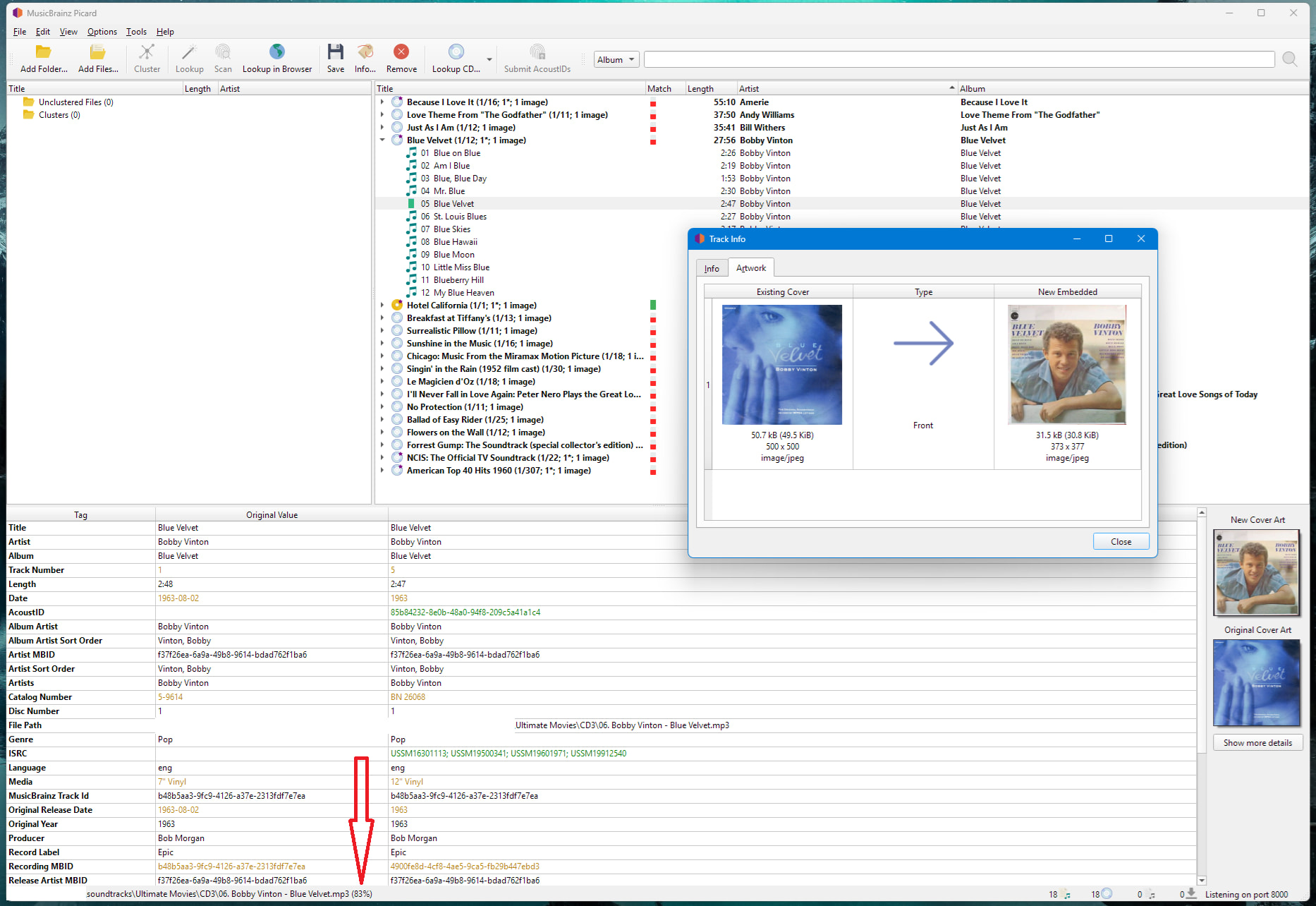 You would also see a green tick in the top right-hand corner of the Album Pane for the same track: